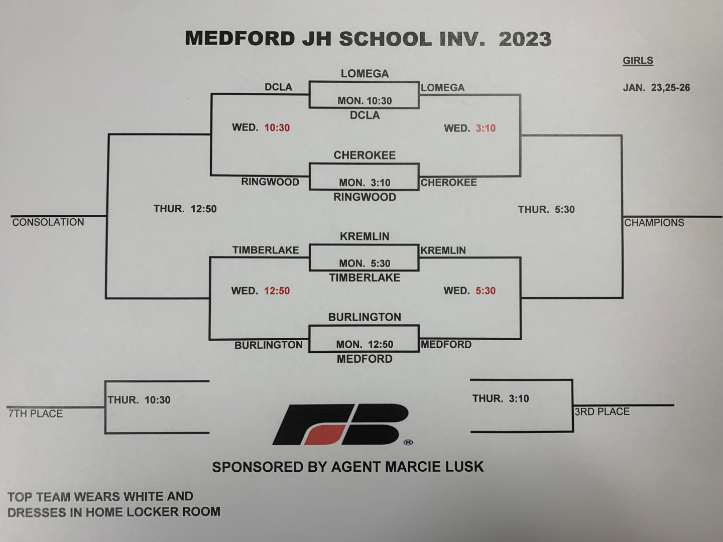 Updated Medford JH Basketball Tournament Girls Bracket